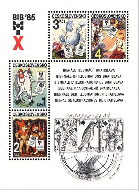 11. ЧССР - 1985. - серия 4м. (4Kcs. - №109) и блок (4м.) - Биенале иллюстраций детских книг в Братиславе. - Мих. №№ 2827-2830-Bl.66 на удивление политематическая серия! Темы: лошади, бабочки, цветы, кошки, ежи, птицы, летучие мыши, азартные игры … на марках!