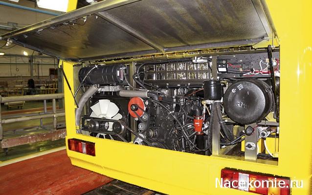 Для тех, кто возит... С точки зрения водителя «Аврора» не поражает открытиями, а добросовестно выполняет возложенные на неё функции. Трио из классических аналоговых приборов даёт информацию обо всех важных параметрах. На панели довольно компактно размещены «таблицы» клавиш. В общем, рабочий интерьер без излишеств. Особо отмечу, что семейство «Аврора» стало первым транспортным средством, поголовно оснащённым новым универсальным рулём, который до этого эпизодически встречался на автобусах ПАЗ и грузовиках КАМАЗ. Железная составляющая автобуса состоит в большинстве своём из известных брендов. КП – ZF, ТНВД и форсунки – Bosch, блок управления – Continental, нагнетатель воздуха – Holset, сцепление – Sachs, глушитель и нейтрализатор – Cummins, компрессор – Knorr-Bremse. Отечественным производителям из значимых элементов достались задний мост КААЗ, рулевой механизм МАЗ, тормозные камеры РААЗ и воздушный фильтр ЛААЗ.