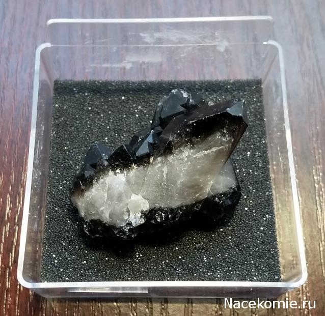 А потом в субботу я почти случайно открыла для себя ещё одно место продажи серии - гипермаркет Гиппо. Искала в нём эту серию где-то в начале запуска, но ни одного номера не видела. А тут смотрю - четыре номера и все, кроме азурита, с выбором. Ну я и выбрала себе второй морион (на этот раз и правда морион), галенит и даже второй базальт, который изначально вообще пропустить думала Этот любопытный сросток получил определение "сэндвич" :)