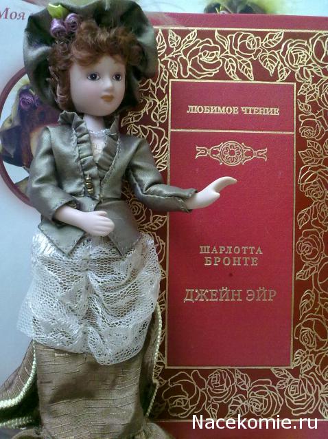 Сегодня впервые узнала о коллекции от мамы! Она уже преобрела себе первую куколку, но почему-то не привезла показать ее, а привезла только журнал. Сказала, что у нас в киоске около станции (мы живем загородом и она приехала на электричке) видела в продаже первый номер! Муж тут же поехал на разведку и привез мне мою первую куколку! Сразу скажу, что журнальные личики мне понравились не все, мне показалось что лица слишком округлые, больше похожи на детские, а не женские, хотелось большего изящества в чертах. Моя Джейн Эйр мне очень понравилась, личико оказалось более узким и овальным, чем на журнальной обложке!