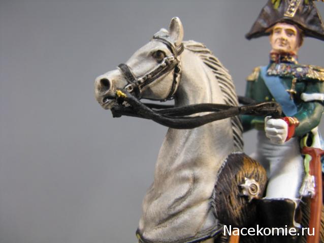4. Ошибки и недочёты. Не совсем понятный момент – на императоре мундир Семёновского полка, а шляпа кавалерийская с белым султаном. На самом султане надо бы добавить чёрных перьев внизу. На лошади не хватает пахвенного ремня. Вместо него заметная щель от соединения половинок лошади.