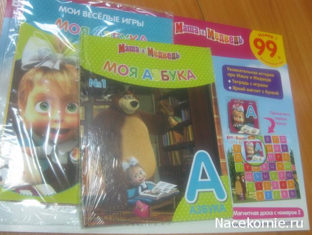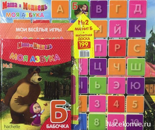 • Новая развивающая коллекция «Моя Азбука Маша и Медведь» позволит ребёнку выучить алфавит в доступной и увлекательной форме. Из номера в номер герои любимого мультфильма «Маша и медведь» будет знакомить ребёнка с буквами, цифрами и окружающим миром. • В каждом выпуске – книга с увлекательной историей о Маше, тетрадь с играми, которые помогут освоить алфавит, а также красочный магнит. • С номером 2 – магнитная доска, на которую ребёнок сможет поместить свою коллекцию магнитов. На обратной стороне доски он сможет играть, складывая буквы в слова.