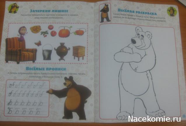 Купила второй номер, продавец еще показала привезенную уценку прошлой азбуки, (несколько букв: В, Г, Н, Ь, может еще пару букв были), взяла В и Г для ознакомления. Прошлая серия мне гораздо больше понравилась: и животные разные, про них отдельный раздел, алфавит на внутренней обложке. А бесшабашная Маша меня просто раздражает, даже ребенку не хочется показывать этот мульт. А в целом книжка, задания, магнитик вроде интересно для доп.развития.