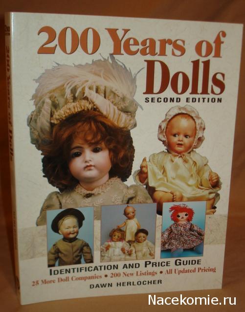 Эта книга переиздавалась много раз. Я нашла 4 варианта 416 стр. 21 смх 27 см, мягкая обложка, вес- около 1.4 кг на английском языке, автор Dawn Herlocher как заявлено на обложке 400 цветных фотографий, описание 5000 кукол от 275 производителей. Книга предназначена для идентификации кукол и ориентации в ценах на них. К сожалению, у меня этой книги нет.