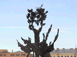 Гуляя по Петроградской набережной Санкт-Петербурга, нельзя пройти мимо удивительного памятника с экспрессивной окраской. Необычное сооружение обязательно привлечет внимание каждого прохожего. Конечно же, речь идет о памятнике Нобелю. Спустя 90 лет после того как была выдана первая Нобелевская премия в Санкт-Петербурге появилось необычное сооружение. С подобной инициативой об увековечивании памяти Альфреду Нобелю выступили два фонда: Нобелевский и Международный фонд истории науки. Они организуют конкурс, в ходе которого были определены исполнители. Они сделали памятник, который изображает взрыв. Будто в стоп-кадр попали бесформенные куски, разлетающиеся в разные стороны. По своей форме монумент напоминает дерево, поэтому ему еще дали название «древо жизни». В качестве материала использовалась бронза. Сначала покрытие сверкало на солнце, но со временем потускнело.