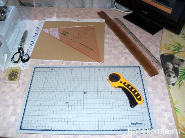 1 Самозатягивающийся мат А3 2 Самозатягивающийся мат А4 3 Ножницы портновские 4 Ножницы зиг-заг 5 Акриловая линейка для пэчворка 6,5×6,5 дюймов. Хемлайн. 6 Дисковый нож 45мм. Аврора. 7 Журналы с шаблонами для лоскутных блоков. Лоскутное шитье красиво и легко)) 8 Макетный нож 9 Прозрачная линейка с металлическим краем, с разметкой строчки(для скрап работ), мне удобно пластиковые шаблоны по такой вырезать.