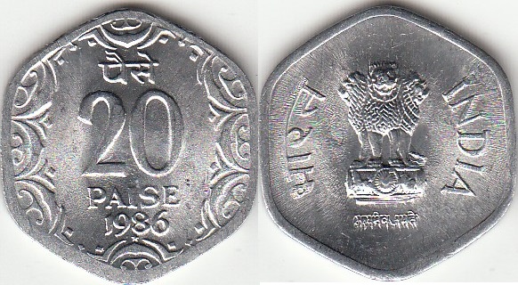 Монеты и банкноты №157 20 пайсов (Индия), 5 эскудо (Португалия)