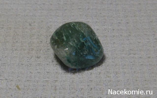 Если честно, то жадеит из МСЗ относится к числу моих нелюбимых образцов, во-первых, галтовка, во-вторых, довольно-таки мелкая, ну а третье, это ее неестественный цвет. Ощущение, что кусок кварца бросили в краситель и он неравномерно покрылся пятнами, где-то они ярче, а в основной массе зеленого вообще нет. Редко сравниваю Минералы с образцами из Энергии, но в этот раз не удержусь. Посмотрите, земля и небо! А уж про размер... эх.