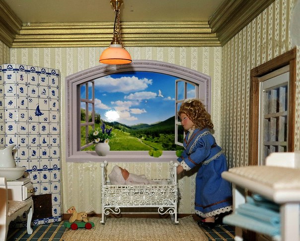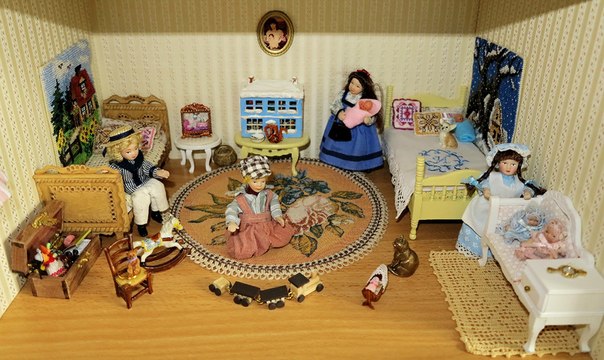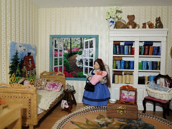 Представляю Вашему вниманию кукольные интерьеры Аллы Стрельцовой.Она пока не может зарегистрироваться здесь,но с ее разрешения покажу ее домик. Домик у нее очень большой,много детских комнат . Есть комнатки для маленьких детей и более старше.